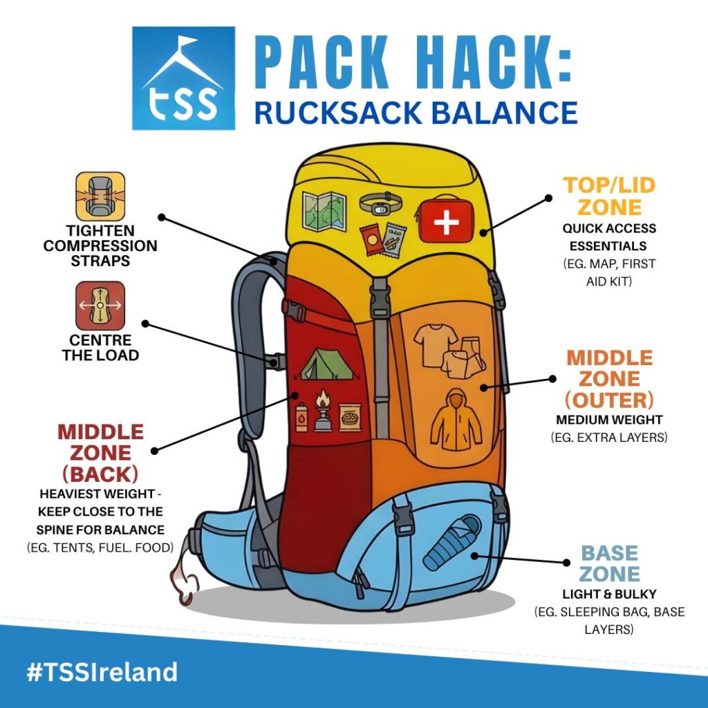 When going away on a camp or excursion it is important to make sure that you pack your rucksack correctly and properly to allow for equal balance and weight distribution across your back. Poor packing doesn’t just make the bag feel heavier—it can strain your shoulders, affect your posture, and over time even lead to discomfort or injury in your upper, mid, and lower back. A well-packed rucksack should sit snugly against your body, with the heaviest items placed close to your spine and centered between your shoulder blades. This keeps your centre of gravity stable and reduces the risk of muscle fatigue or imbalance when walking over long distances or uneven terrain.